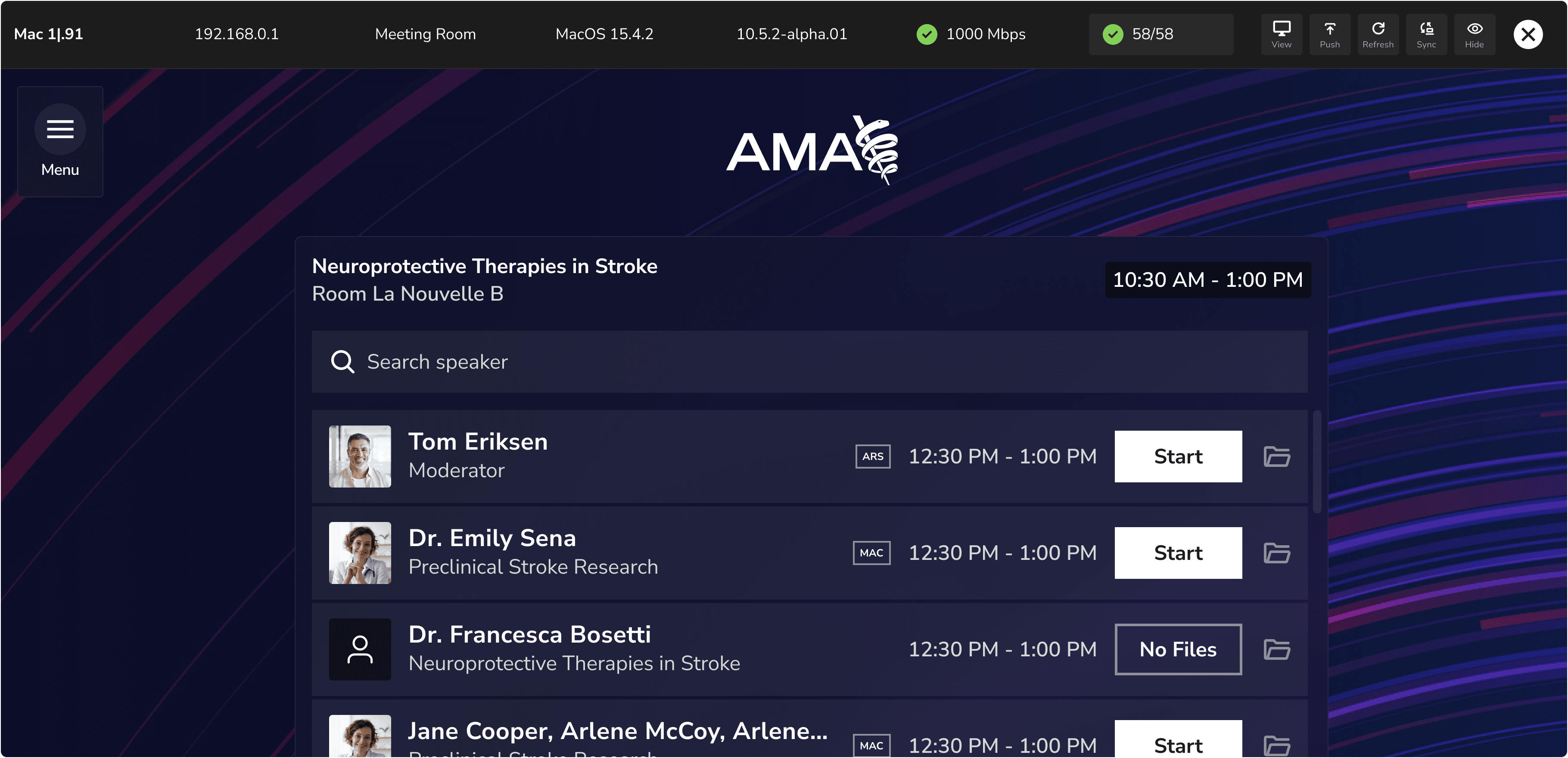 Enable presenters and moderators to quickly find sessions and launch presentations.